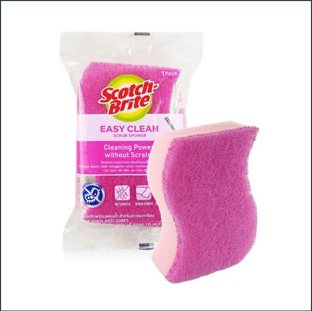 - Miếng rửa chén có mút không trầy xước hình sóng màu hồng 115x70mm Scotch-Brite 3M, 1 miếng/gói