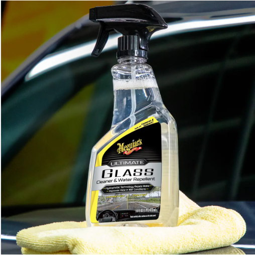 1 chai Meguiar's Ultimate Glass Cleaner & Water Repellent: Nước lau vệ sinh kính, có tạo hiệu ứng lá sen, 473 ML