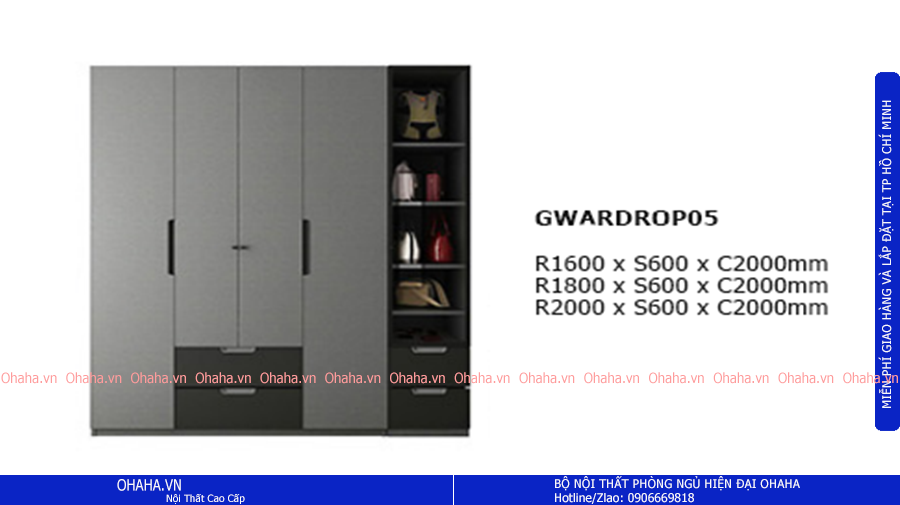 - 01 tủ quần áo có kích thước D160 x R60 x C180cm;