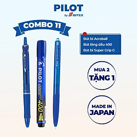 ✨Combo Pilot 11 : Bút bi Acroball mực xanh, Bút lông dầu màu xanh, Bút bi Super Grip.G mực xanh