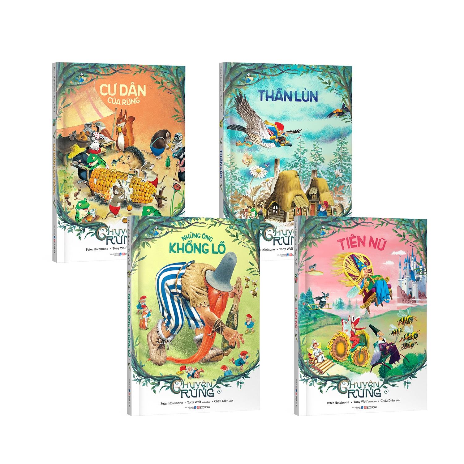 Điểm đặc biệt của bộ Chuyện rừng không chỉ nằm ở bốn câu chuyện vui nhộn, ly kỳ, đặc sắc do tác giả Peter Holeinone viết lời mà còn ở những minh họa vô cùng sống động do họa sĩ Tony Wolf vẽ. Những nét vẽ tươi tắn, đầy màu sắc sẽ khiến các bạn đọc nhỏ hứng thú lật giở từng trang sách, dõi theo những chuyến phiêu lưu của các cư dân trong rừng, các vị thần lùn hay ông khổng lồ và các nàng tiên.