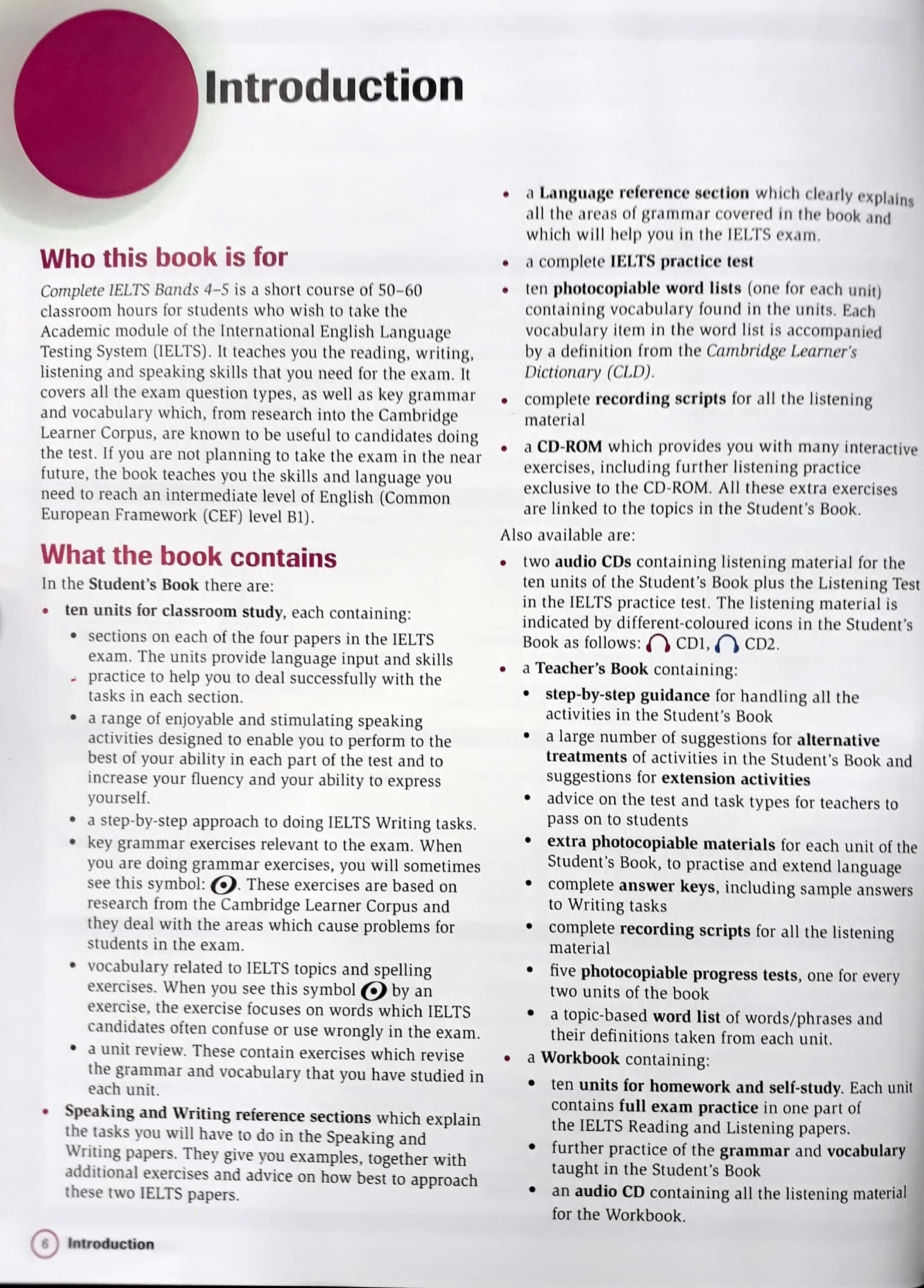 Complete IELTS combines the very best in contemporary classroom practice with stimulating topics aimed at young adults wanting to study at university. The Student's Pack is ideal for self-study. It consists of the Student's Book with Answers with CD-ROM *The Audio CDs (is not included in Student's Book) which contain all the material for the listening activities. The Student's Book with Answers contains 8 topic-based units with stimulating activities to that students gain skills practice for each of the four papers of the IELTS exam. It also contains a complete IELTS practice test to allow students to familiarise themselves with the format of the exam. The CD-ROM contains additional skills, grammar, vocabulary and listening exercises.