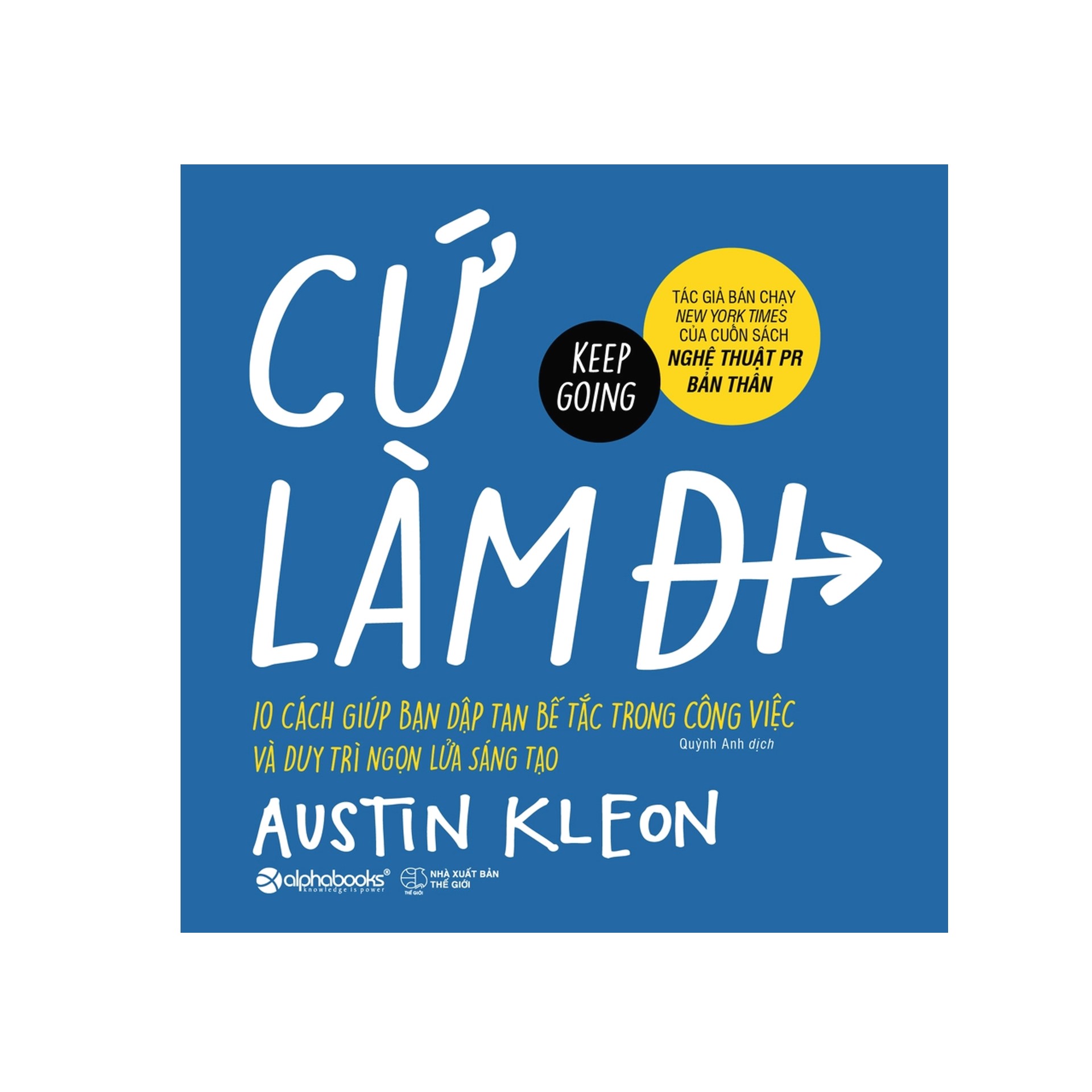 - Khu vườn của riêng bạn Cho dù bạn đang kiệt sức, ở giai đoạn khởi động phải làm lại từ đầu, hay là đang vô cùng thành công đi chăng nữa, Cứ làm đi! sẽ giúp bạn tiếp bước trên con đường sáng tạo nghệ thuật. NHẬN XÉT CỦA ĐỘC GIẢ UY TÍN “Những ai dính dáng đến công việc sáng tạo nên có cuốn sách này trên giá.” —Bookpage “Austin Kleon tựa như cầu vồng sáng rọi trong đám mây mù u tối trên Internet. Tôi theo dõi bảng tin của anh ấy hằng tuần vì nó mang lại cho tôi niềm vui và nguồn cảm hứng bất tận.” —Neil Pasricha, tác giả cuốn The Happiness Equation (tạm dịch: Hạnh phúc cân bằng) “Viết phần tiếp theo của một sê-ri thành công cực kỳ khó, đặc biệt với một cuốn sách vô cùng nổi tiếng như Steal Like An Artist (tạm dịch: Trộm cắp như một nghệ sĩ). Nhưng Austin không chỉ hoàn thành tốt nhiệm vụ ấy, mà thậm chí còn nghiền nát nó. Cuốn sách này rất tuyệt và vô cùng phù hợp vào lúc này, dù bạn là nghệ sĩ hay doanh nhân, là nhà làm phim hay bậc làm cha mẹ. Cứ làm đi! hàm ẩn rất nhiều chiến lược giúp bạn vượt qua vực sâu tuyệt vọng, hỗn loạn và mù mờ khi cuộc sống đang dần vụn vỡ quanh mình. Austin không hứa hẹn về những phương pháp diệu kỳ nhưng anh ấy biết nếu tất cả chúng ta ngồi lại và bắt tay làm việc – tạo nên những điều tốt đẹp, những điều tuyệt vời rồi sẽ tới. Tôi nghĩ anh ấy đã đúng và tôi thực sự yêu thích cuốn sách này.” — Ryan Holiday, tác giả Vượt qua bản ngã, Cách tạo ra sản phẩm trường tồn. VỀ TÁC GIẢ Austin Kleon là tác giả của ba cuốn sách bán chạy viết về sáng tạo nghệ thuật trong kỷ nguyên kỹ thuật số: Nghệ thuật PR bản thân, Cứ làm đi!, Steal like an artist (tạm dịch: Trộm cắp như một nghệ sĩ). Sách của anh bán được hơn 2 triệu bản và dịch ra hơn 20 thứ tiếng. Ngoài ra, anh còn là diễn giả tại nhiều sự kiện do Pixar, Google, SXSW, Tedx và The Economist tổ chức. Nghệ Thuật PR Bản Thân Tôi muốn viết một cuốn sách hướng dẫn cho người mới bắt đầu về cách làm việc này: cuốn sách dành cho những ai ghét tự quảng cáo bản thân. Có thể gọi đây là một hình thức thay thế cho tự quảng cáo. Tôi sẽ cố gắng chỉ cho các bạn cách nhìn công việc như một quá trình không bao giờ kết thúc, cách chia sẻ quá trình đó để thu hút những người có thể sẽ hứng thú với công việc bạn làm, và cách xử lý các giai đoạn thăng trầm khi trưng sản phẩm và bản thân ra trước xã hội. Nếu cuốn Steal Like an Artist (tạm dịch: Trộm cắp như một nghệ sĩ) nói về việc vay mượn ảnh hưởng từ người khác thì cuốn sách này nói về việc gây ảnh hưởng đến mọi người bằng cách để họ sao chép ý tưởng của bạn. Mời các bạn đón đọc!