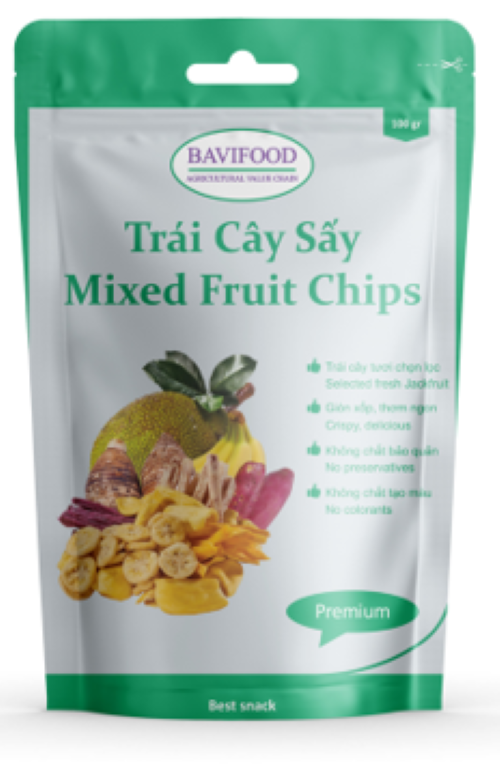 ✨[ Combo: thùng = 10 gói x 100 grs/gói ] 05 Gói Mít Sấy và 05 Gói Trái Cây Sấy Chân Không (Mixed Fruit Chips), Giòn Xốp Tự Nhiên – BAVIFOOD, Khối Lượng: 1 kg (thùng = 10 gói x 100 grs/gói) – Premium