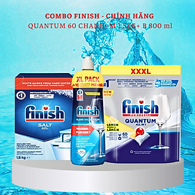 Combo - Viên rửa bát Finish Quantum 60 viên hương chanh + Muối làm mềm nước 1.5kg + Nước làm bóng 750ml