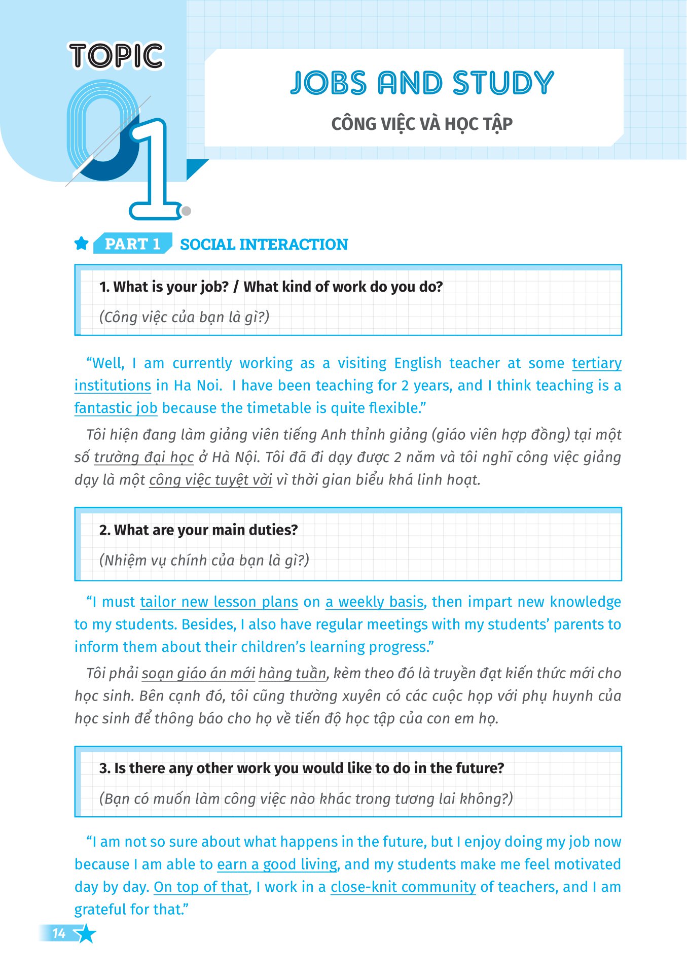 Cuốn sách được chia thành 10 bài học, mỗi bài học tập trung vào 1 chủ đề người học thường gặp trong kì thi VSTEP. Trong đó, mỗi chủ đề được chia thành 3 phần: