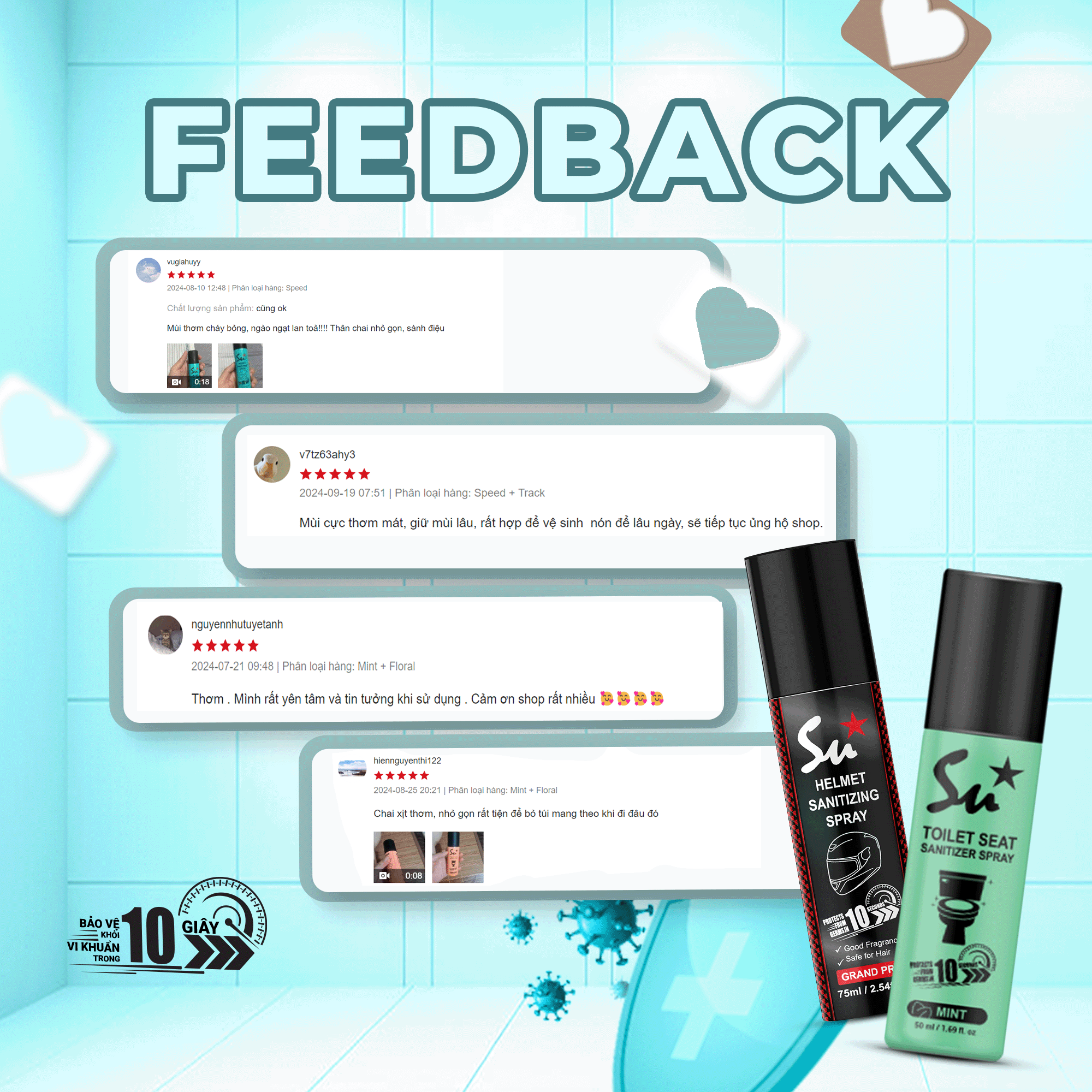 ✨Combo Xịt khử khuẩn bệ ngồi bồn cầu Su Star, loại bỏ 99.999% vi khuẩn trong 10 giây 50ml