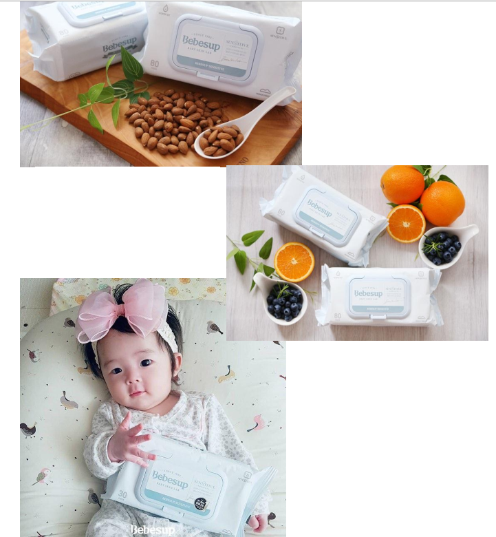 - BEBESUP là loại khăn ướt cho cho trẻ em , được bình chọn là sản phẩm có lượng tiêu thụ cao trong tất cả các sản phẩm khăn ướt của Bebesup. Sản phẩm được làm bằng vải dập nổi độ dày 50gsm, chứa chiết xuất từ những thực phẩm xanh, để giữ cho làn da của bé sạch sẽ và không gây kích ứng.