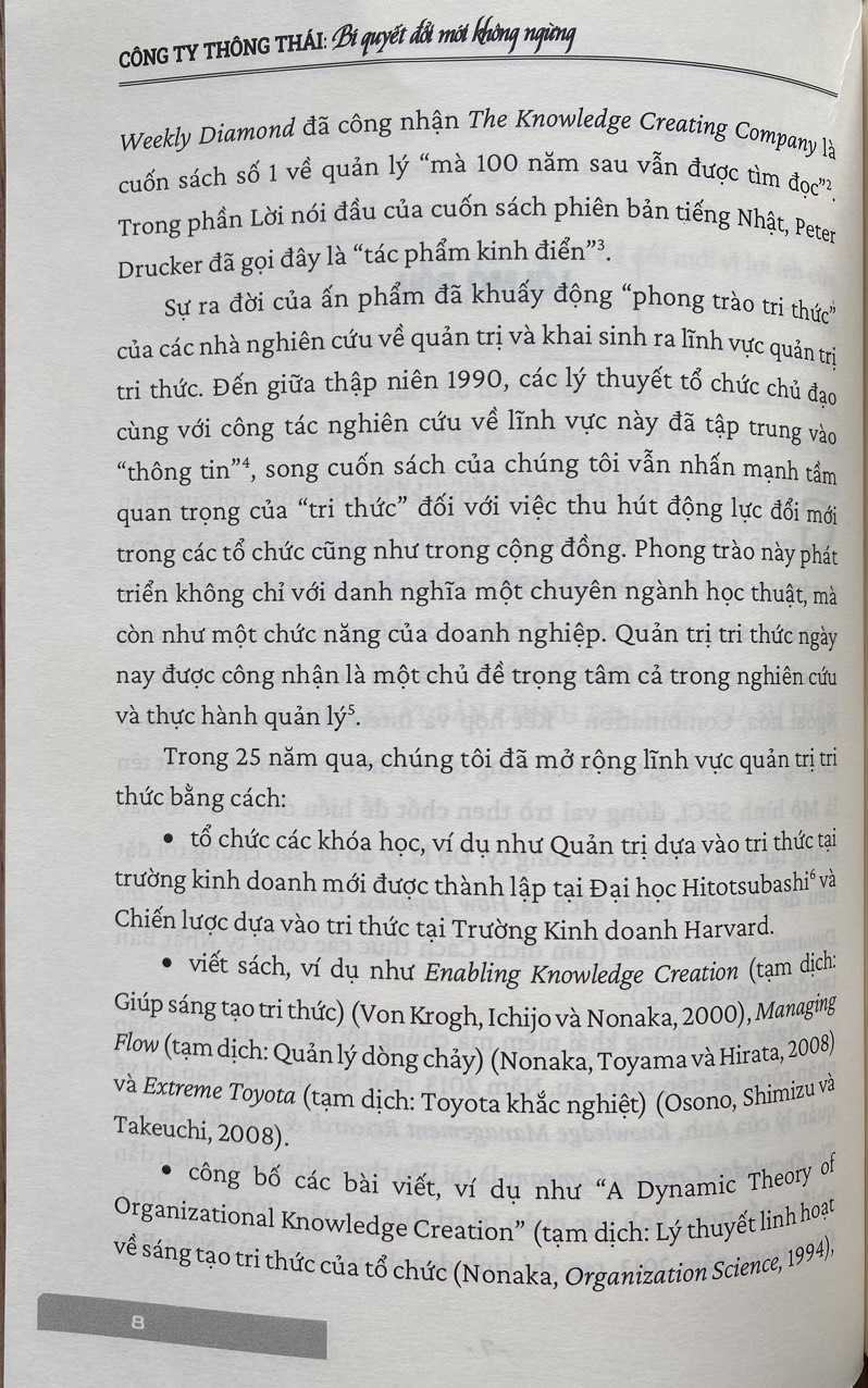 Trong "Công ty thông thái: Bí quyết đổi mới không ngừng", Ikujiro Nonaka và Hirotaka Takeuchi - các chuyên gia quản lý kỳ cựu sẽ bàn về sự cần thiết của trí tuệ, là tri thức ngầm bậc cao trước một thế giới đang thay đổi nhanh chóng.