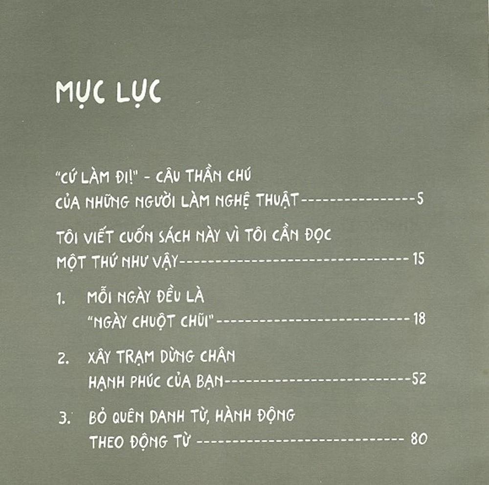 Cho dù bạn đang kiệt sức, ở giai đoạn khởi động phải làm lại từ đầu, hay là đang vô cùng thành công đi chăng nữa, Cứ Làm Đi! sẽ giúp bạn tiếp bước trên con đường sáng tạo nghệ thuật.