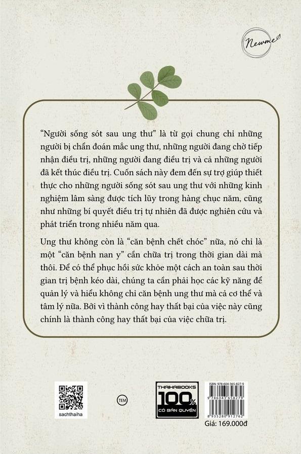Cuốn sách bao gồm các hướng dẫn chăm sóc sức khỏe để cải thiện chất lượng cuộc sống cho những người sống sót sau ung thư – có thể gọi là các liệu pháp tâm lý và cơ thể của bác sĩ Lee Joon Nam, chuyên các liệu pháp trị bệnh tự nhiên.