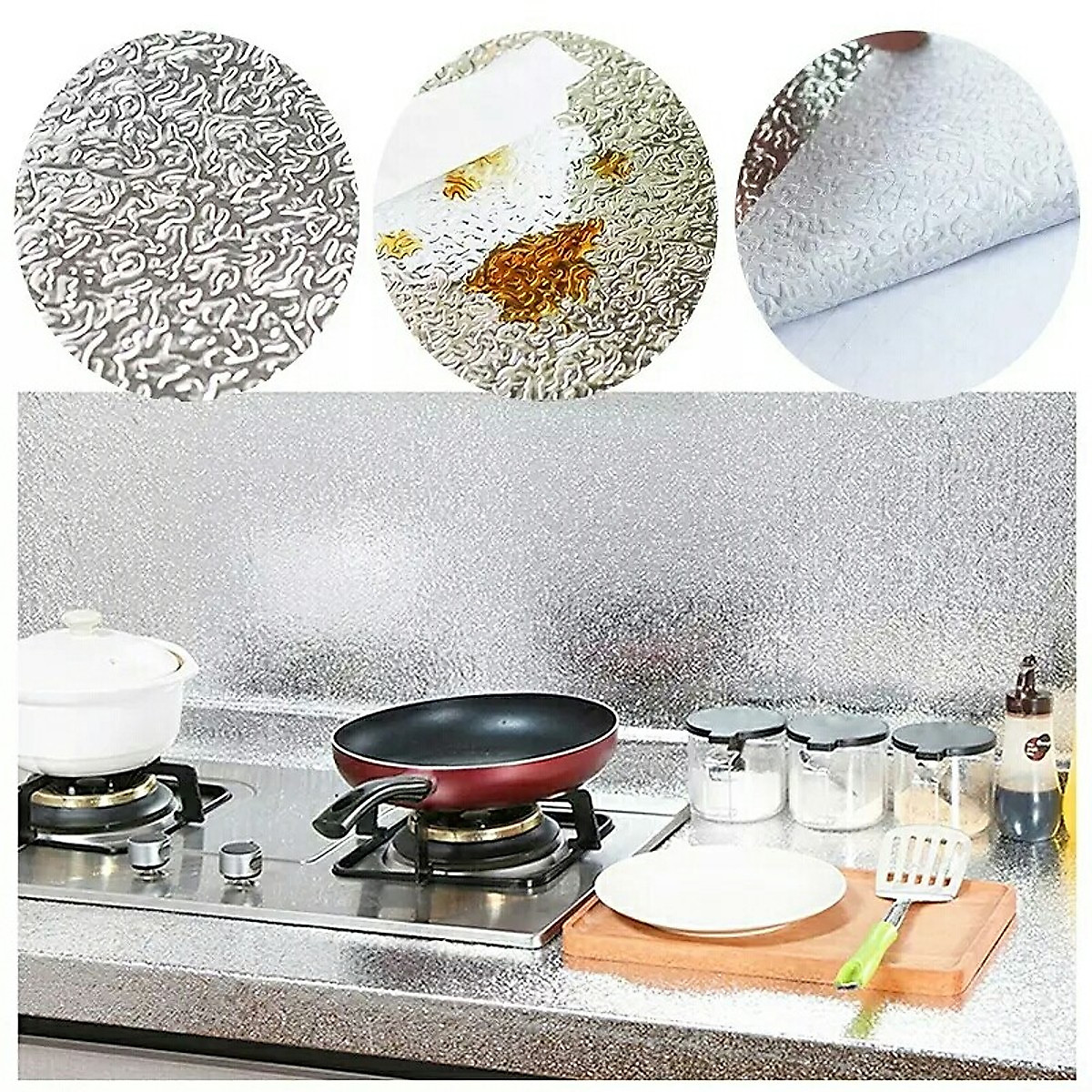 Cuộn Giấy Nhôm Bạc Họa Tiết - Dán Tường Nhà Bếp Cách Chịu Nhiệt Chống Thấm, Chống Dầu Mỡ - Trang Trí