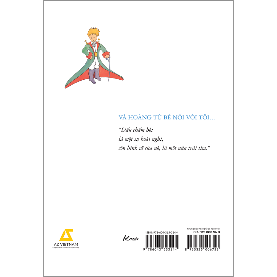 Những điều Hoàng tử bé nói với tôi là một ấn phẩm của Bloom Books để nhắc nhớ về chàng hoàng tử bé của chúng ta. Với hai phiên bản đai màu đỏ và xanh tương ứng với hai chiếc thiệp xinh xắn tặng kèm, Bloom Books mong muốn lan tỏa những bài học và thông điệp sâu sắc mà Hoàng tử bé gửi gắm.