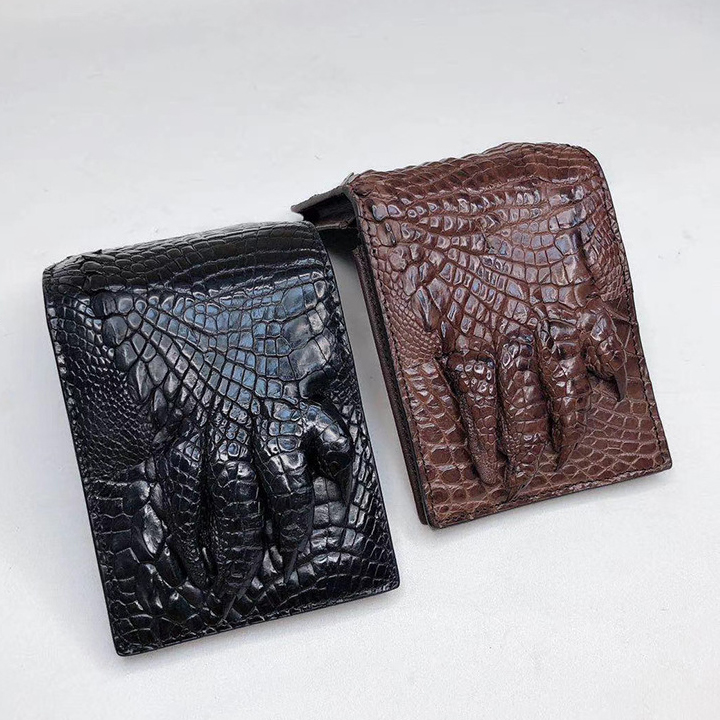 Bóp Da Cá Sấu 2 Mặt Bàn Tay Cá Sấu Màu Đen - Ví Nam Da Cá Sấu 2 Mặt Có Khoá Kéo Cao Cấp Dáng Ngang Thời Trang