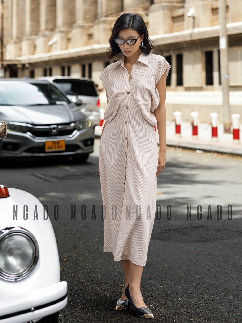 ✨Đầm sơ mi sọc cam NGADO, Đầm suông, Đầm vintage, Đầm dạo phố thiết kế