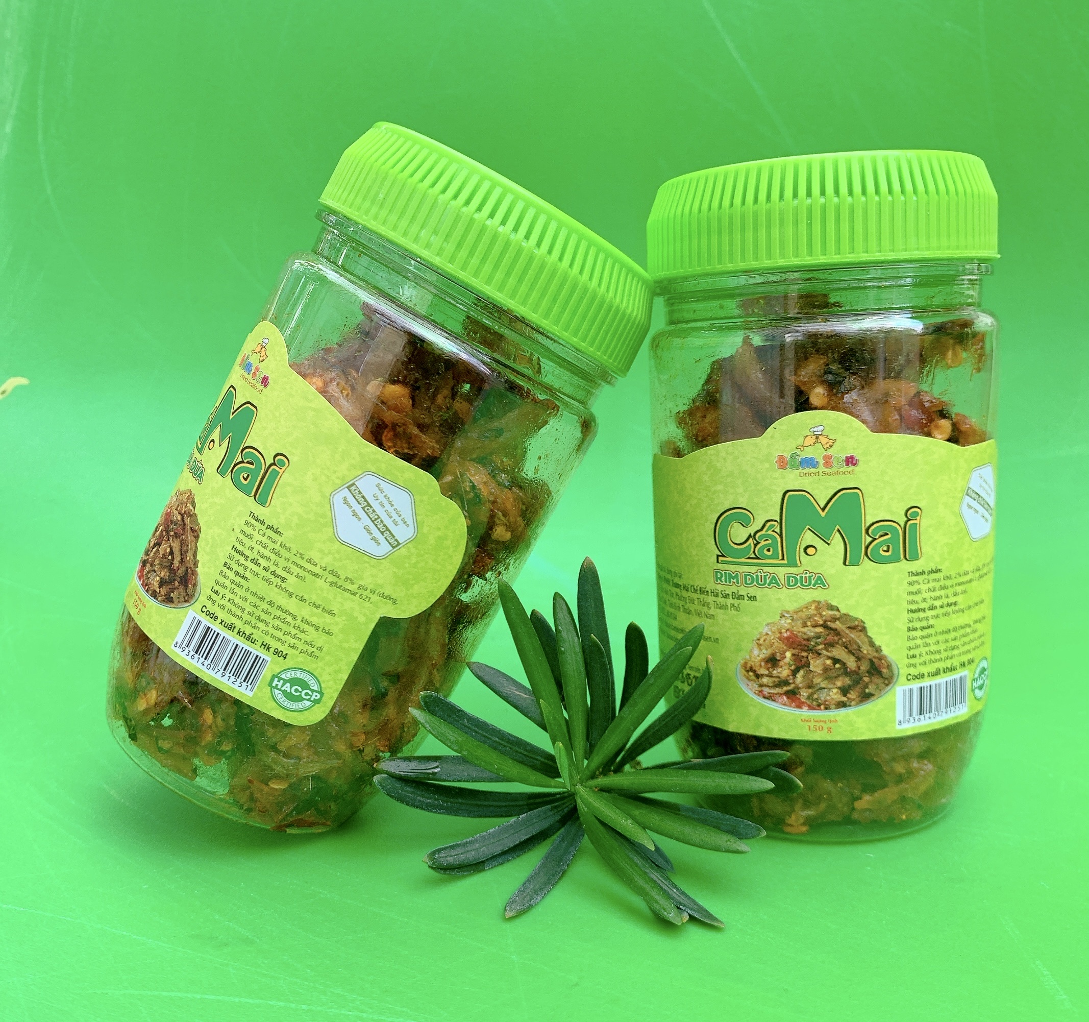 Thành phần: 90% cá mai khô, 2% dừa và dứa, 8% gia vị (đường, muối, chất điều vị mononatri L-glutamat 621, tiêu, ớt, hành lá, dầu ăn) Hạn sử dụng: 9 tháng kể từ ngày