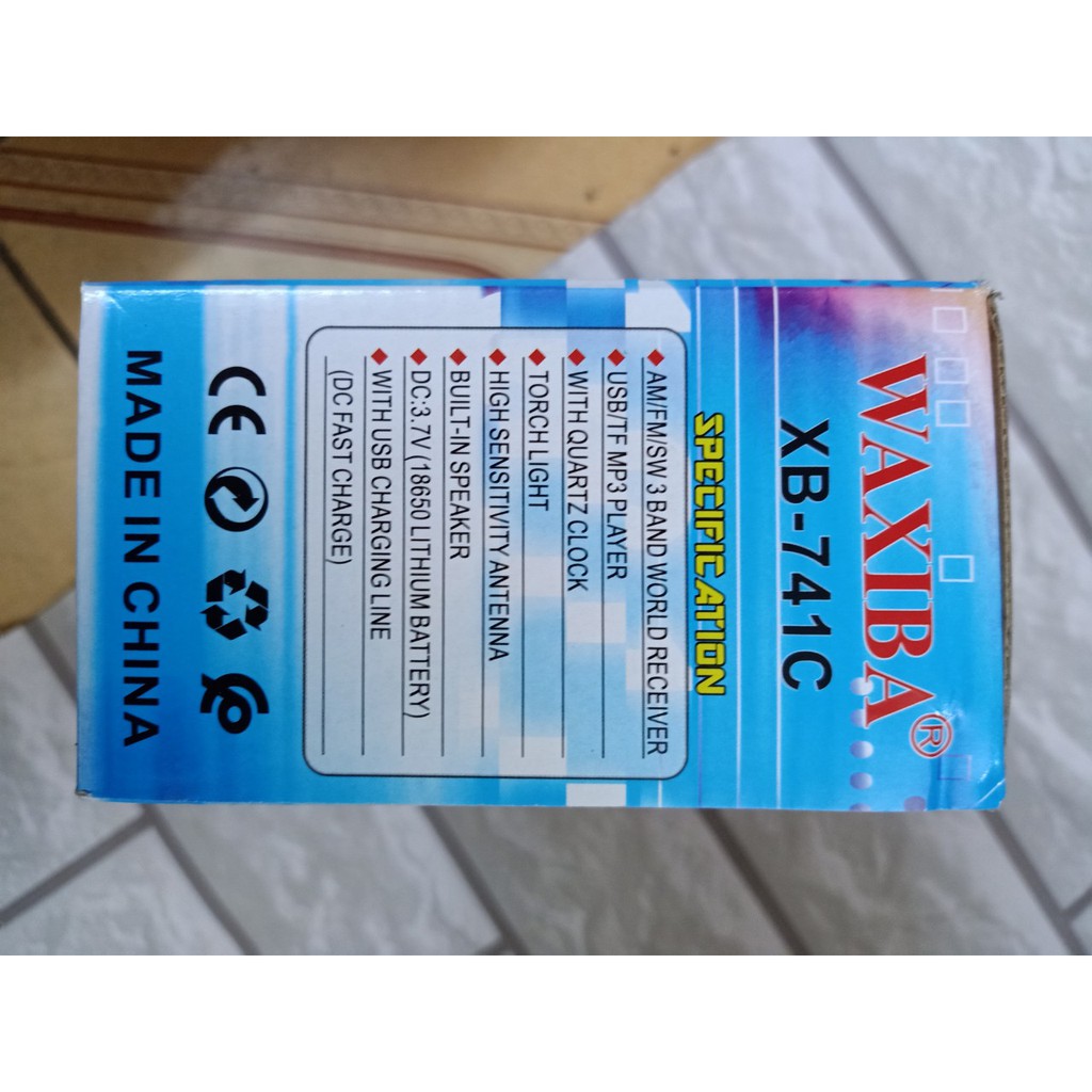 Chi tiết sản phẩm-ĐÀI RADIO USB NGHE NHẠC WAXIBA XB-741C-SỬ DỤNG PIN SẠC 18650 cho thời lượng nghe bền hơn ( TÍCH HỢP BÊN TRONG SẢN PHẨM)- Bắt sóng AM/ FM/ SW VỚI TÍN HIỆU TỐT- HỖ TRỢ CỔNG USB,THẺ NHỚ NGHE NHẠC MP3- CÓ ĐỒNG HỒ XEM GIỜ ĐƯỢC ĐẶT Ở MẶT TRƯỚC SẢN PHẨM RẤT TIỆN LỢI- Có Hỗ Trợ đèn pin siêu sáng- KÍCH THƯỚC khoảng 17048 10mm-Chất lượng bắt sóng tốt , âm thanh lớn rõ nét ĐÀI LOA WAXIBA XB-XB741C SIÊU HAY CÓ ĐỒNG HỒ , NGHE NHẠC USB THẺ NHỚ RADIO AM FM SW