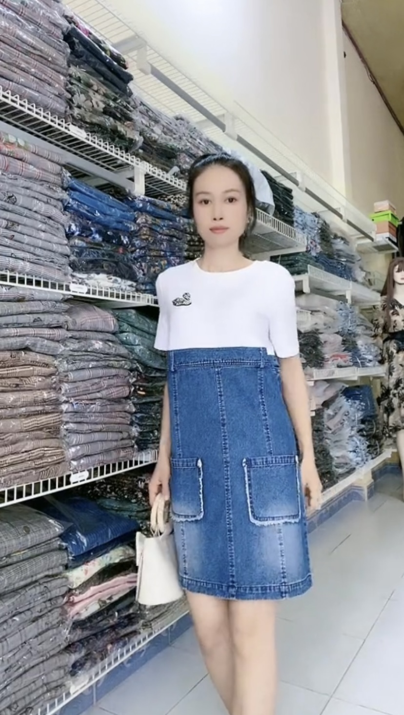 Mua tại TiktokĐầm suông cao cấp denim Mã: DLEG025 Màu: Trắng + Xanh Chất liệu: Denim, spandex Số đo vòng1/vòng2(cm): 93 giãn/92