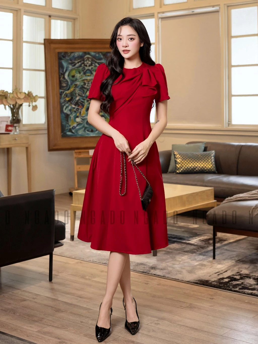 ✨Đầm đỏ xoắn vai NGADO , đầm dự tiệc , đầm công sở