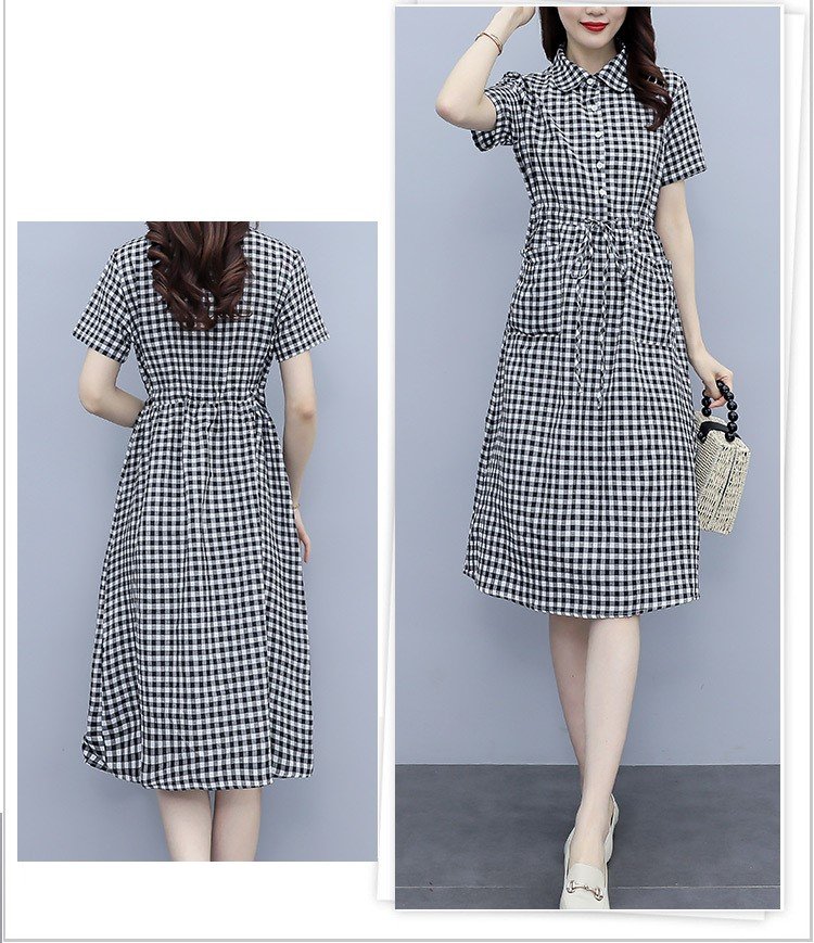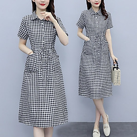 ✨Đầm đũi nữ ngắn tay, họa tiết kẻ caro trẻ trung, 2 túi bên thời trang, đầm có dây rút eo tôn dáng NH174