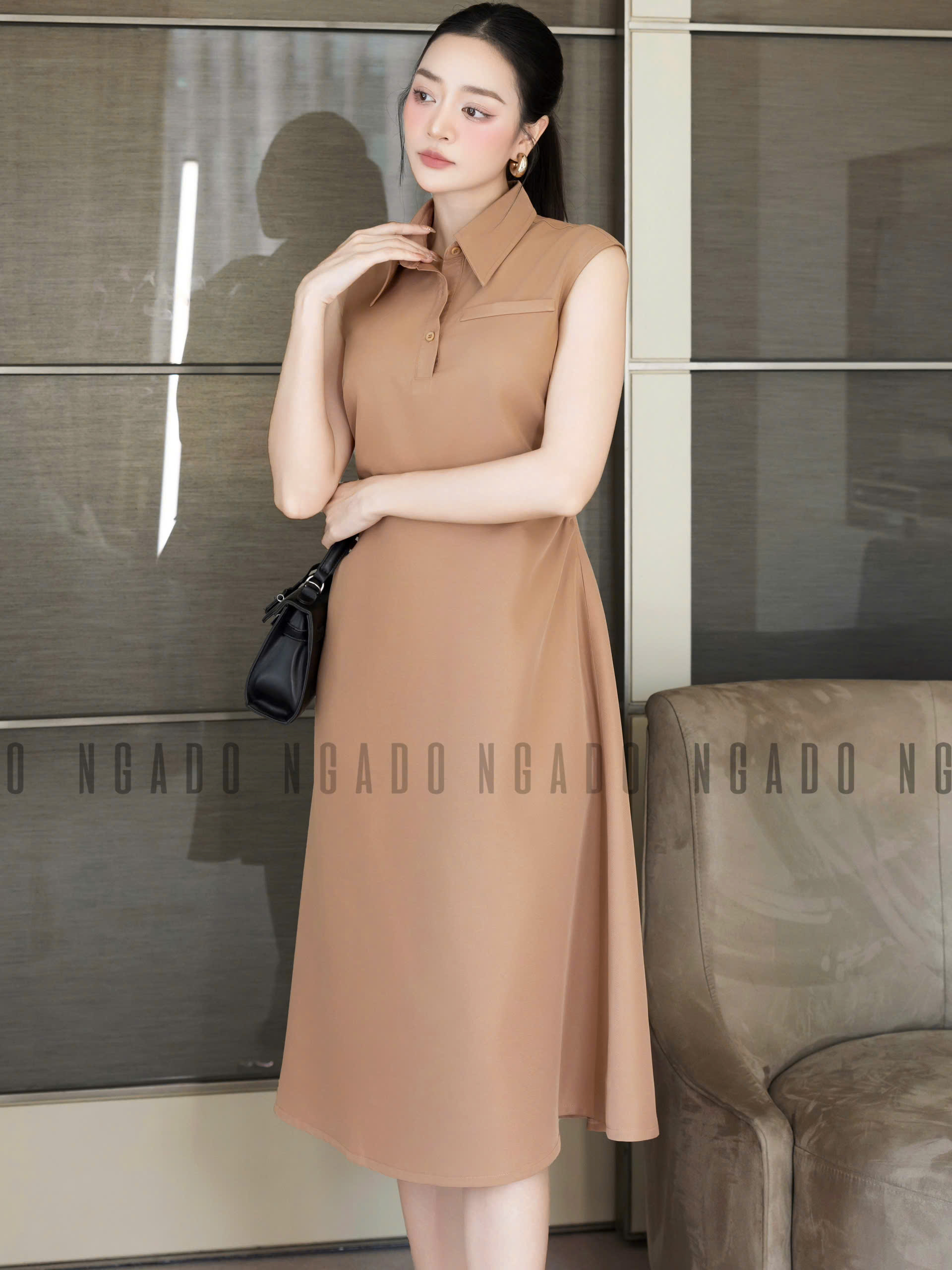 ✨Đầm nâu cổ sơ mi NGADO , đầm công sở , đầm dự tiệc