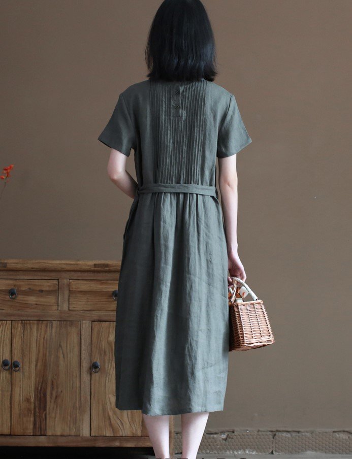 ✨Đầm ngắn tay chất liệu linen cao cấp, dáng suông basic dễ mặc, phong cách kín đáo nhã nhặn NH191 xanh xám