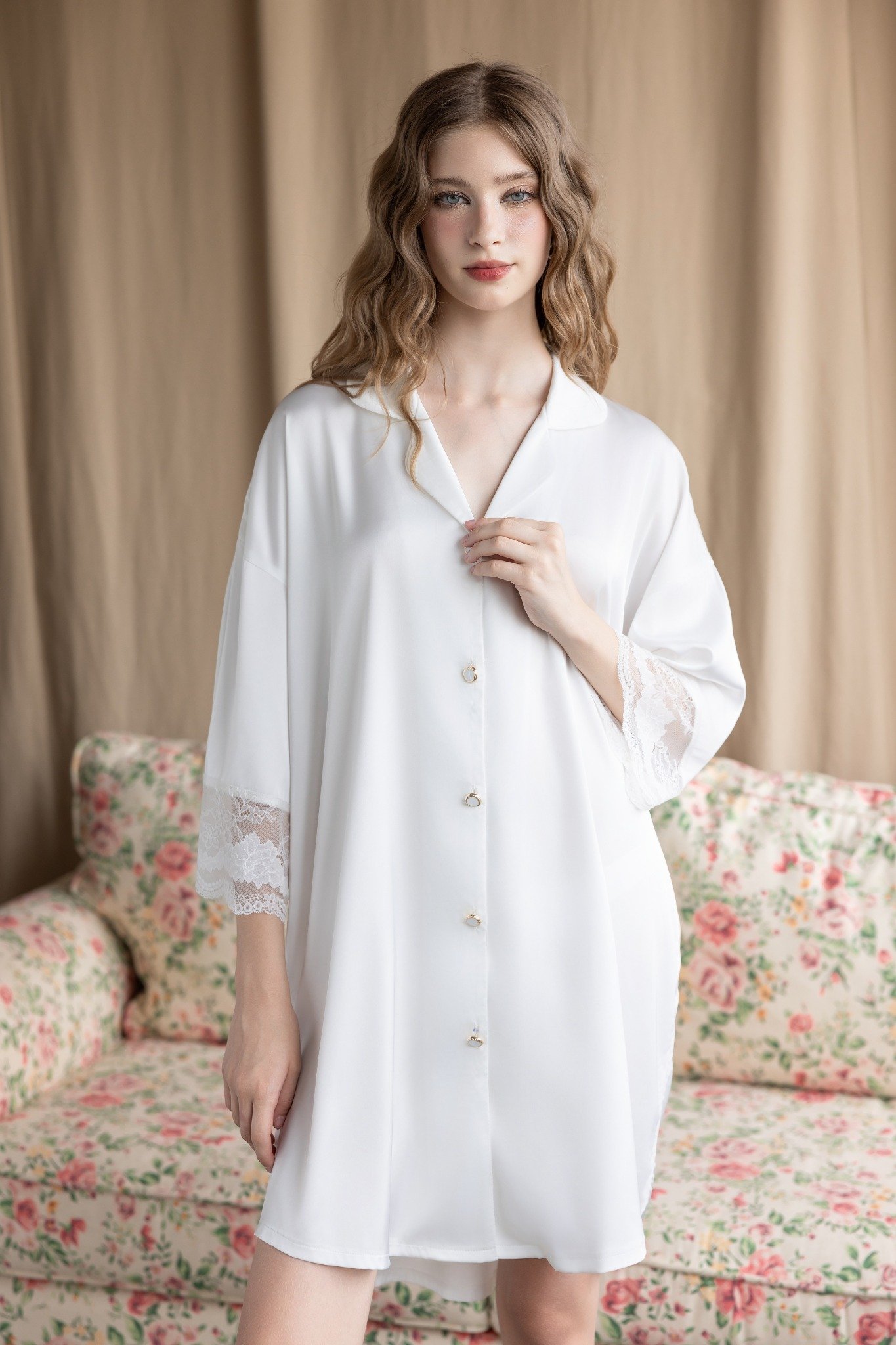 Mua tại TiktokThương hiệu: Sanny House Tên sản phẩm: Đầm ngủ sơmi D561 Chất liệu: lụa cao cấp mềm mịn, co giãn, thấm hút tốt Kiểu dáng: sang chảnh, trẻ trung, hiện đại Màu: trắng Size: dưới 70kg