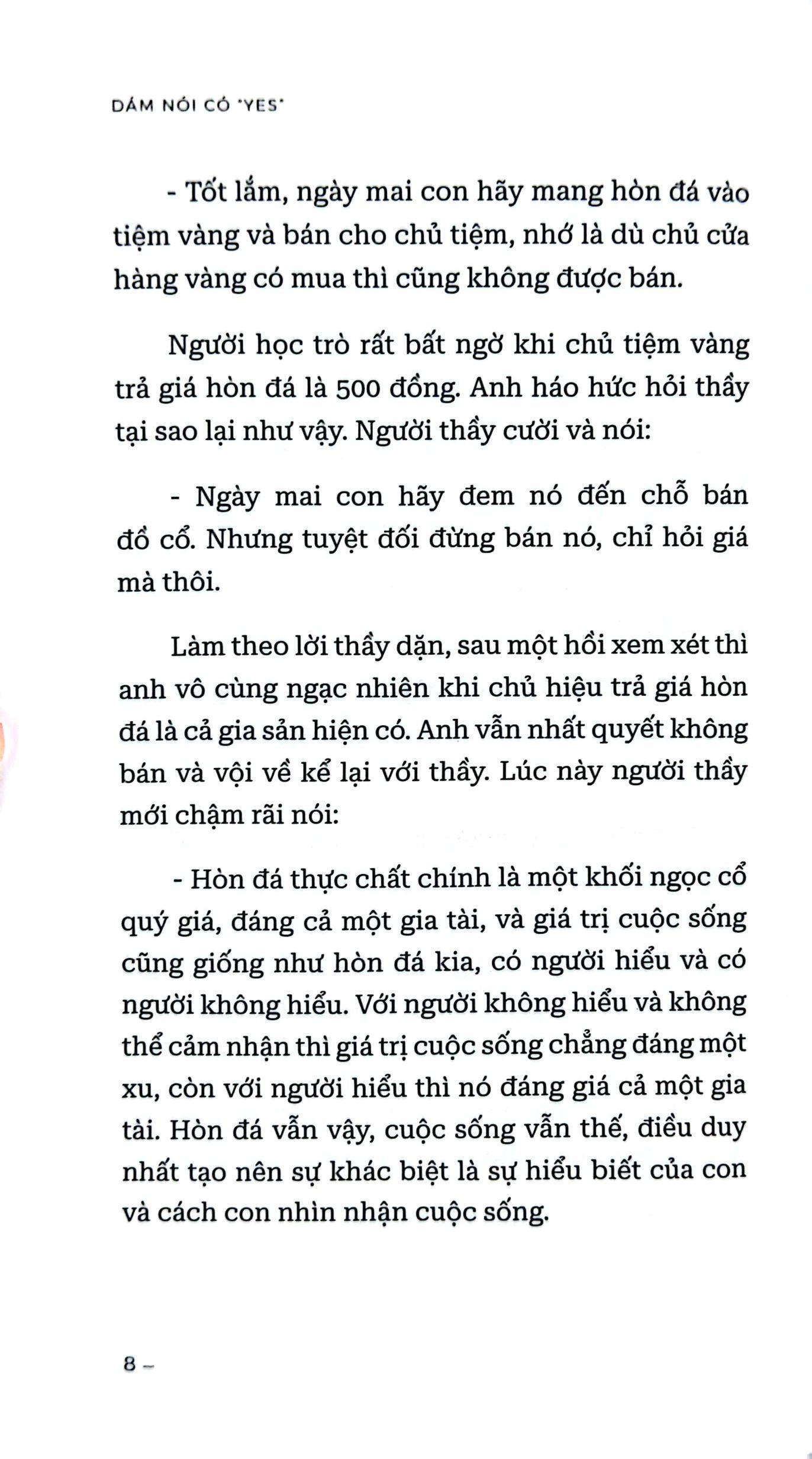Với tất cả những điều này, hy vọng rằng cuốn sách “Dám Nói Có “Yes”” không chỉ là nguồn cảm hứng mà còn là một hành trang đầy đủ cho những ai muốn tạo ra sự thay đổi trong cuộc sống của m.ình.