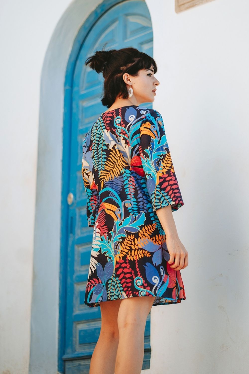 Đầm Boho Dài Tay Isla Bonita, chất lụa cao cấp, mềm mại, thun co giãn ở eo. Phom suông xòe rộng. Dài đầm 90cm (45x90) Phù hợp đi biển, dạo phố, công sở, hoặc dự