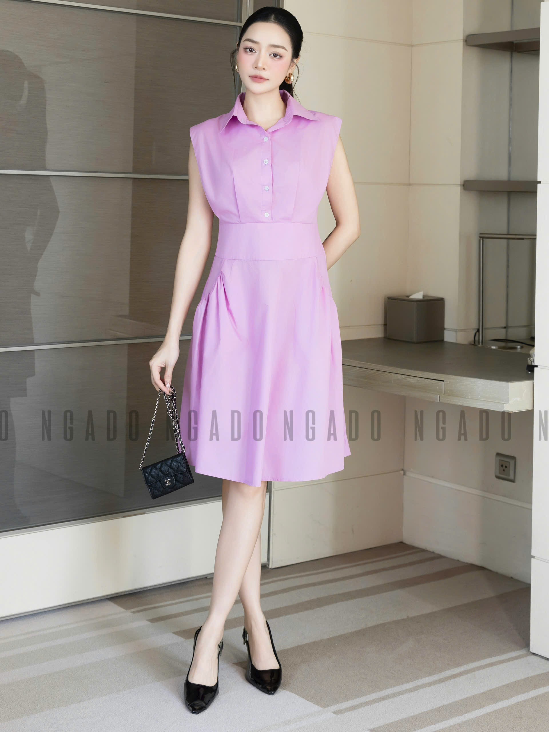 ✨Đầm tím cổ sơ mi NGADO , đầm sơ mi Nữ , đầm công sở