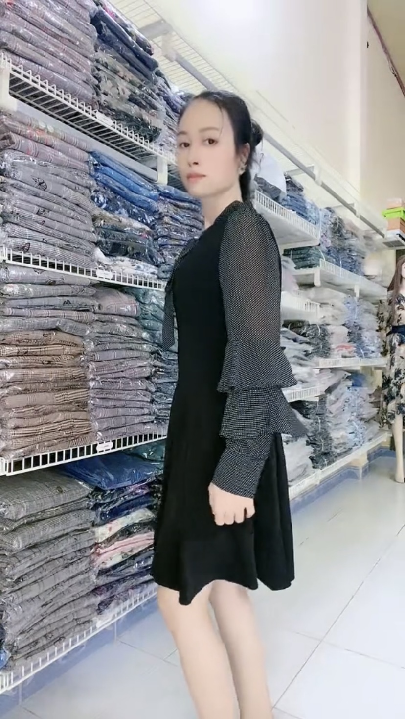 Đầm xoè tiểu thư tay dài ôm phối tầng kết hợp cổ nơ họa tiết chấm bi nhí xinh thanh lịch Mã: DLAG030 Màu: Đen Chất liệu: Acetate, polyester Số đo vòng1/vòng2(cm): 90/77 Về chất