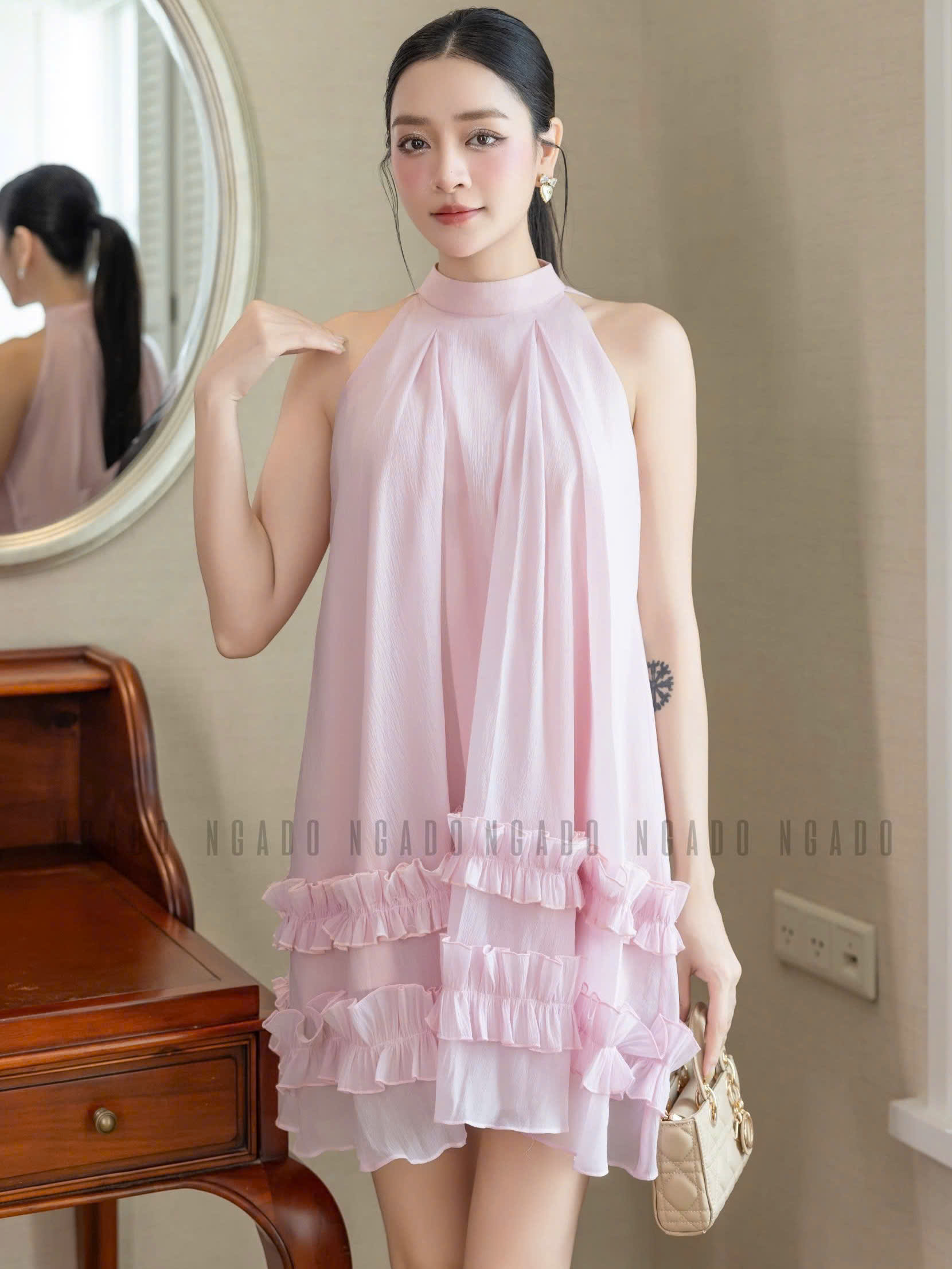 ✨Đầm yếm hồng phối bèo NGADO , đầm dáng yếm , đầm suông