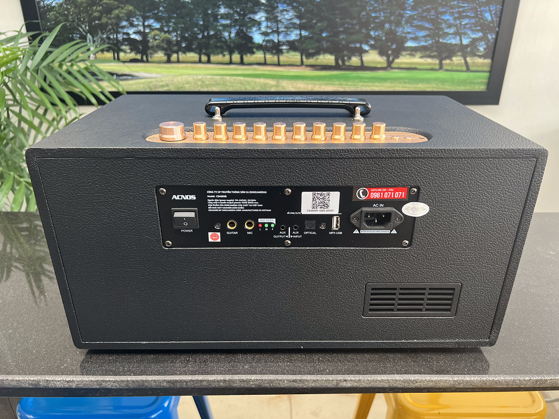- Mặt máy được thiết kế điều chỉnh riêng cho micro bao gồm: Âm lượng từng micro, âm Bass, Âm Treble, tiếng ECHO, hay điều chỉnh độ trễ micro DELAY thích hợp cho nhiều chất giọng khác nhau. TÍCH HỢP VANG SỐ CHỈNH CƠ HOẶC CHỈNH CHUYÊN NGHIỆP QUA PHẦN MỀM Dàn âm thanh di động ACNOS CS450SR sử dụng chip DSP thực thụ, Tích hợp vang số cho phép chỉnh cơ (Phần mềm chỉnh âm thanh chuyên nghiệp dùng cho khách hàng am hiểu về âm thanh hoặc có yêu cầu khắc khe về âm sắc sẽ ra mắt trên máy tính và thiết bị di động trong thời gian sắp tới). Máy khắc phục nhiễu nền tốt ngay cả khi mở mic. Nút nguồn ngay trên mặt máy giúp dễ dàng thao tác và tính năng tắt mềm không tiêu thụ điện. Công suất RMS 150W tương đương công suất PMPO 750W cho âm trầm mạnh mẽ. Hàng chục ngàn bài hát chất lượng cao, chọn bài trộn chung YouTube và nguồn nhạc chọn lọc qua app CloudKaraoke. Ứng dụng chọn bài CLOUDKARAOKE