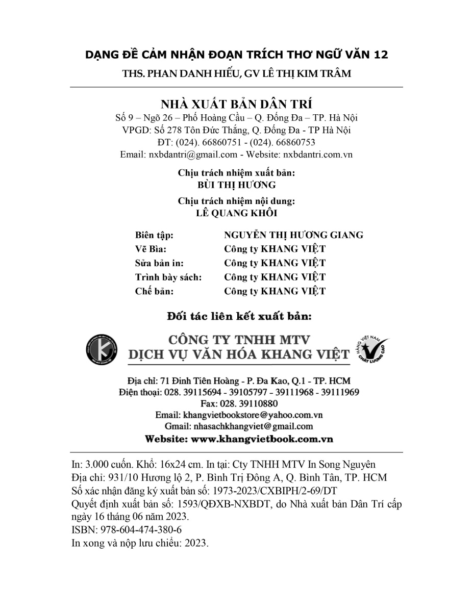 Giới thiệu sách DẠNG ĐỀ CẢM NHẬN ĐOẠN TRÍCH VĂN XUÔI - NGỮ VĂN 12 | Văn học Online