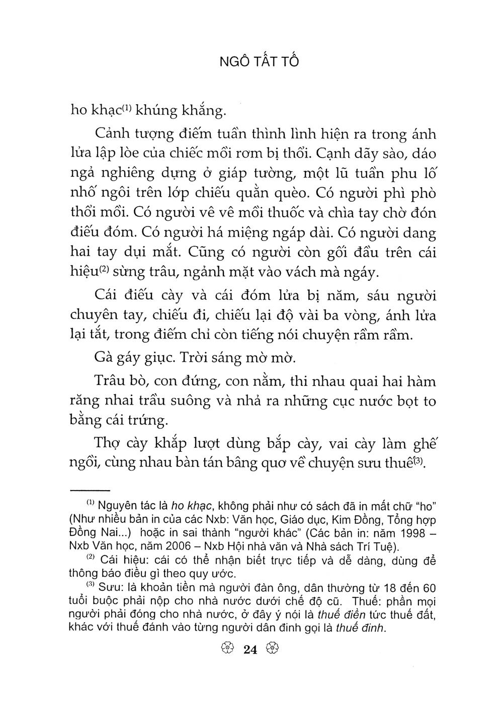 "Chị Dậu là nhân vật điển hình được người đọc yêu mến. Và người yêu mến chị hơn cả là Ngô Tất Tố. Giữa biết bao tệ nạn và cảnh đời bất công ngang trái ở nông thôn Việt Nam cũ, Ngô Tất Tố đã hết lòng bảo vệ một người phụ nữ là chị Dậu. Nhiều lần chị Dậu bị đẩy vào tình thế hiểm nghèo, rất có thể bị làm nhục nhưng Ngô Tất Tố đã bảo đảm cho chị Dậu được bảo đảm an toàn phẩm toàn vẹn, giữ trọn phẩm giá, không phải đau đớn. dằn vặt."