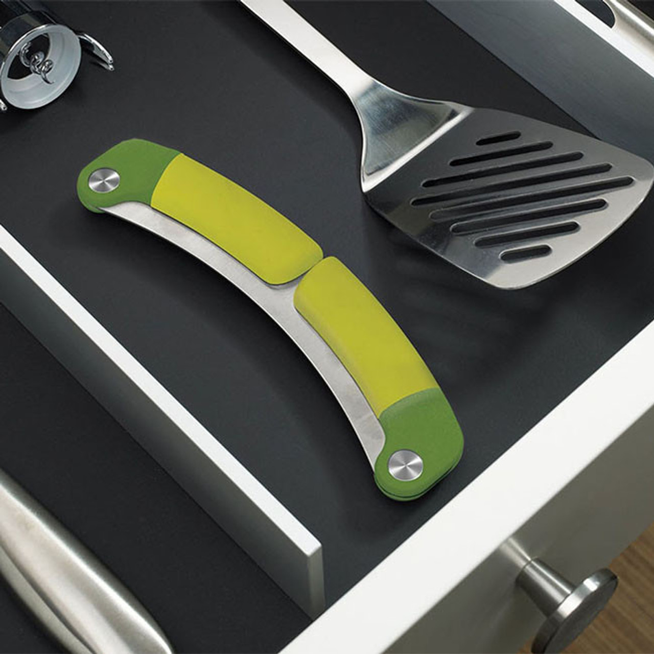 Tay cầm có thể gập lại trên lưỡi dao giúp nó nhỏ gọn và an toàn khi cất giữ