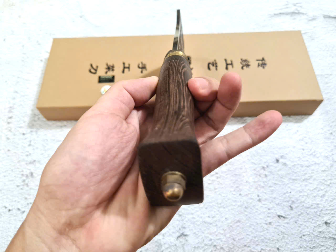 - Chức năng: Chặt xương ống, chân giò, trâu bò - Kích thước: Lưỡi: 22cm, cán: 10cm, rộng: 10cm, dầy: 5ly, trọng lượng: 800g - Cán : Gỗ mun, Khâu đồng đỏ , chốt đinh