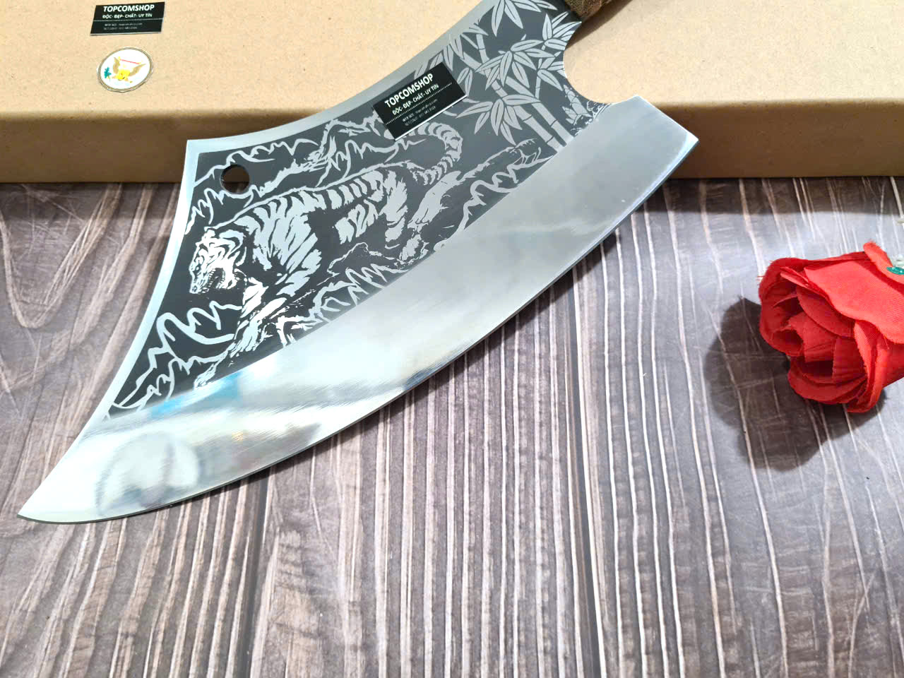 Tên sản phẩm: Dao Phúc Sen Dao Chặt Xương 03 Cán Cẩm - Chất liệu: 100% thép nhíp ô tô được lựa chọn và kiểm duyệt kỹ càng. - Chất liệu cán: gỗ cẩm chỉ