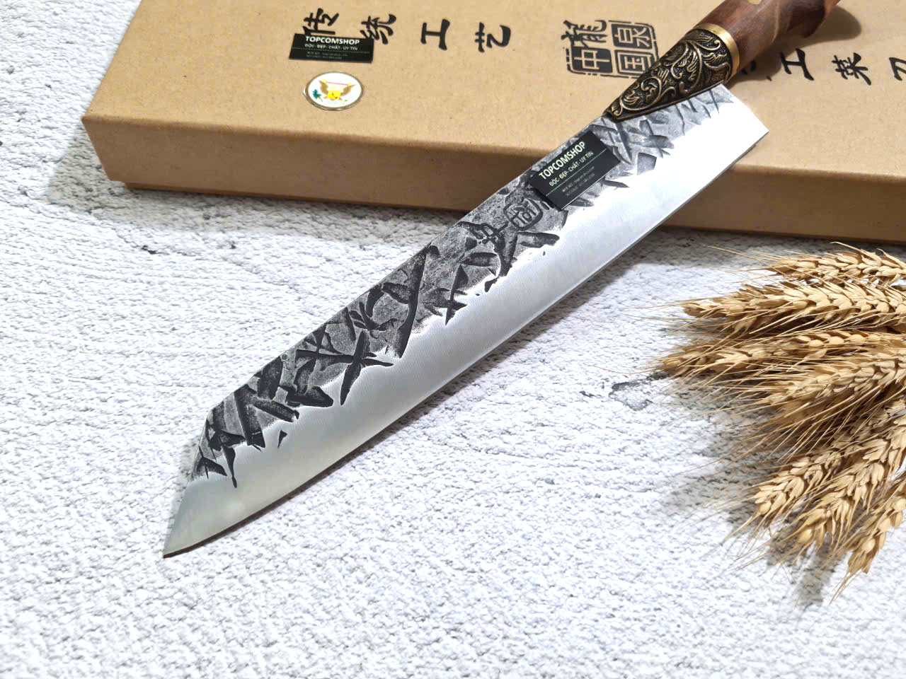 Dao Phúc Sen Dao Bầu 22 Cán Cẩm Khâu Đồng G10D - Kích thước: lưỡi: 20-22cm, cán: 13cm, rộng: 7,5cm, dầy: 1,5ly, trọng lượng: 300g - Chức năng: sử dụng chuyên thái lọc thịt ,cá,