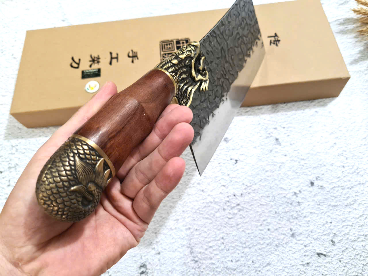 Tên sản phẩm: Dao Phúc Sen, Dao Thái Kiểu 03 Cán Gỗ Cẩm - Chức năng: chuyên thái thịt, rau củ - Chất liệu: 100% thép nhíp ô tô được lựa chọn và kiểm duyệt