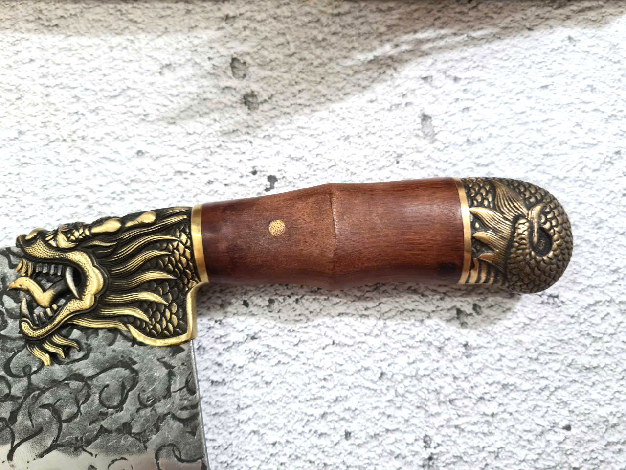 Dao Phúc Sen Pha Luông ( Serbian Cleaver ) - DPLDDL - Chức năng: Thái và Chặt gà vịt -Kích thước: Lưỡi: 20cm, cán: 12cm, rộng: 9cm, dầy: 2,5-3ly, trọng lượng: 450g - Cán :