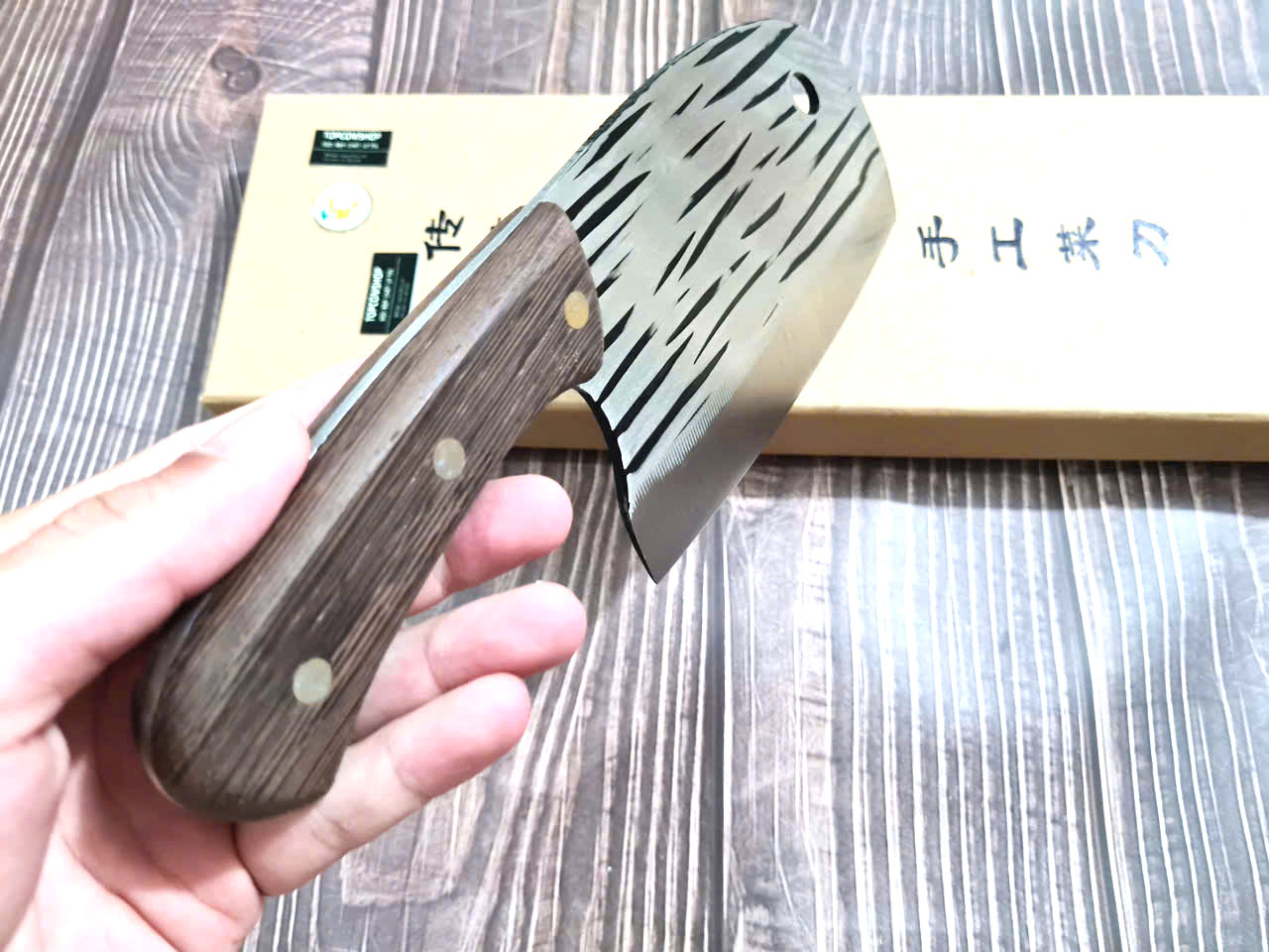 - Chức năng: chuyên chặt thái cá, chặt gà, lọ - Kích thước: Lưỡi: 26cm, cán: 12,5cm, rộng: 6,5cm, dầy: 4ly, trọng lượng: 480g - Cán : Gỗ mun , Khâu và chốt đồng đỏ