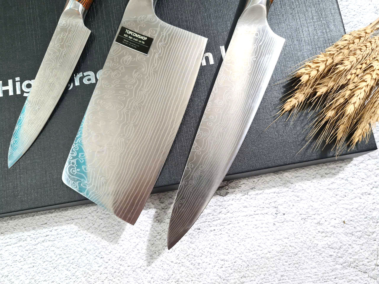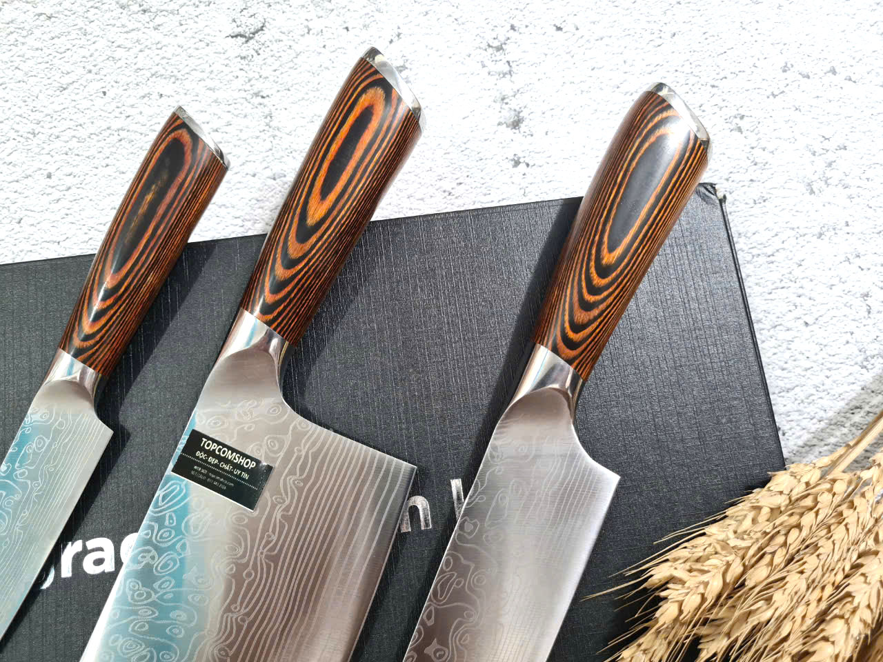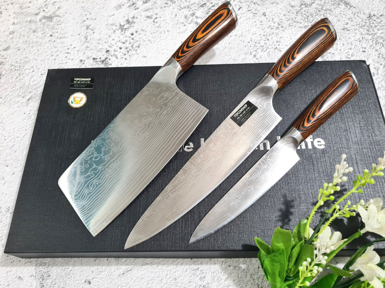 ✨DAO - BỘ 3 DAO BẾP NHẬT BẢN THÉP DAMASCUS MÃ A2 DT2 nt topcomshop vn