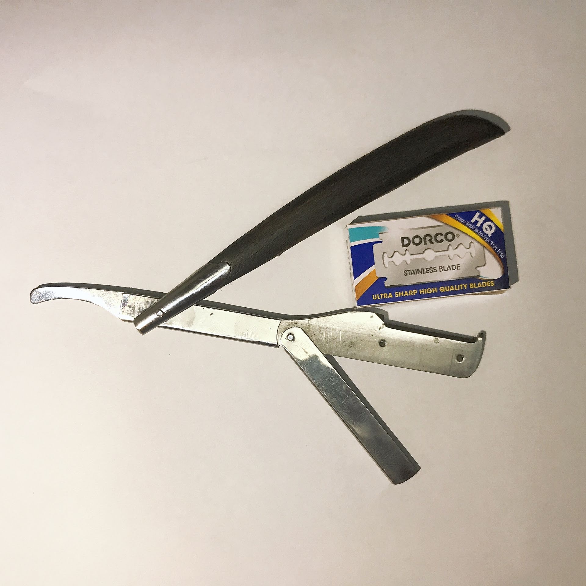 Dao Cạo Râu Tóc Mặt Tỉa Chân Mày Cán Gỗ Sơn Đen Bọc Thép Đa Năng Tặng Kèm 10 Lưỡi Cạo