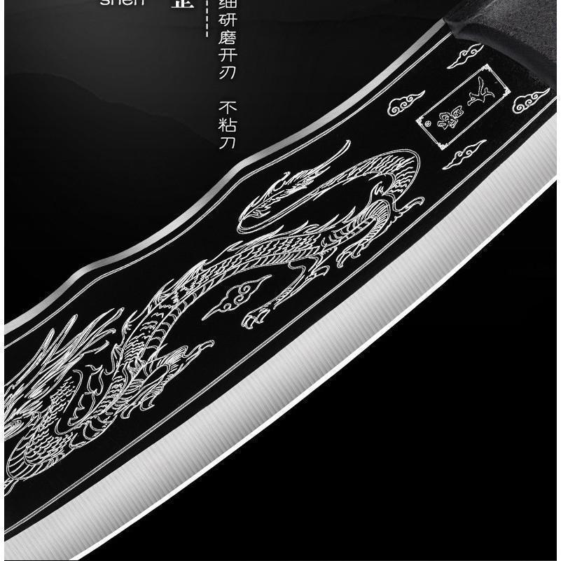 ✨Dao Chặt Thái Hắc Long Chất Liệu Thép Mangan Khắc Laser Họa Tiết Vân Rồng 33cm Kèm Bao Da