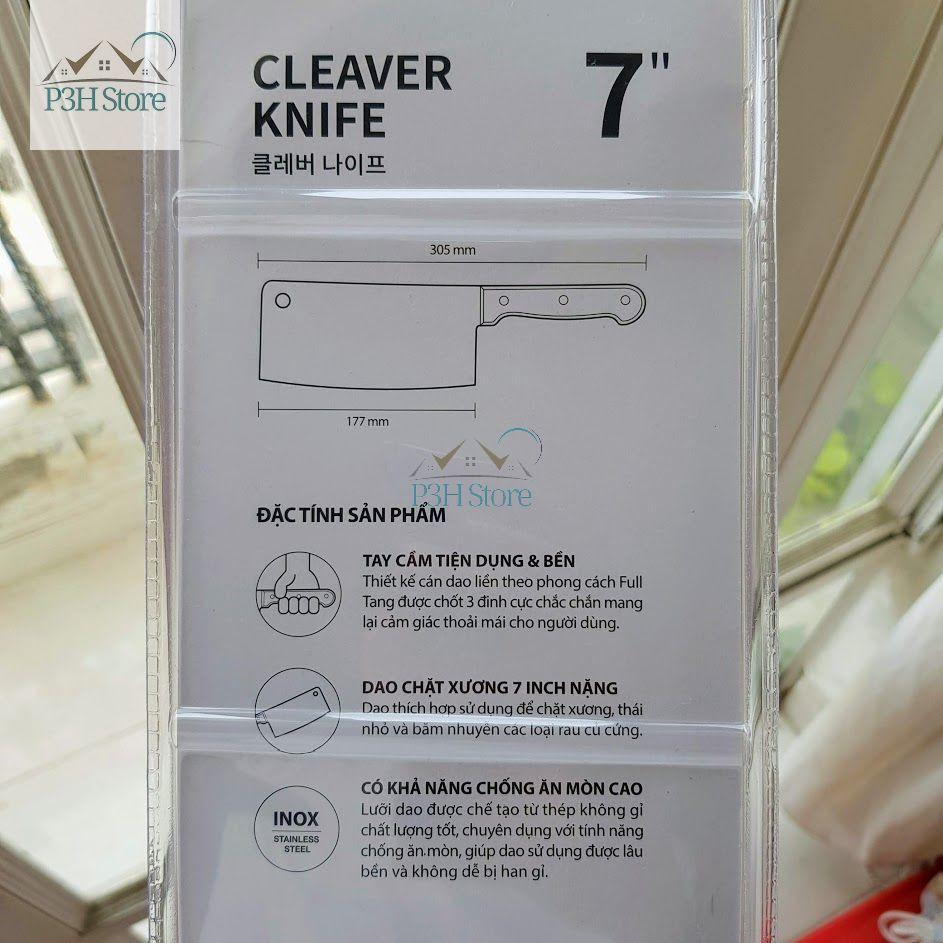 - Kích thước: lưỡi: 24cm, cán: 13cm, rộng: 10cm, dầy: 0,5, trọng lượng: 700g - 900g - Chức năng: sử dụng chuyên chặt xương ống, xưởng thủ, chân giò,xương bò Là sản phẩm được yêu