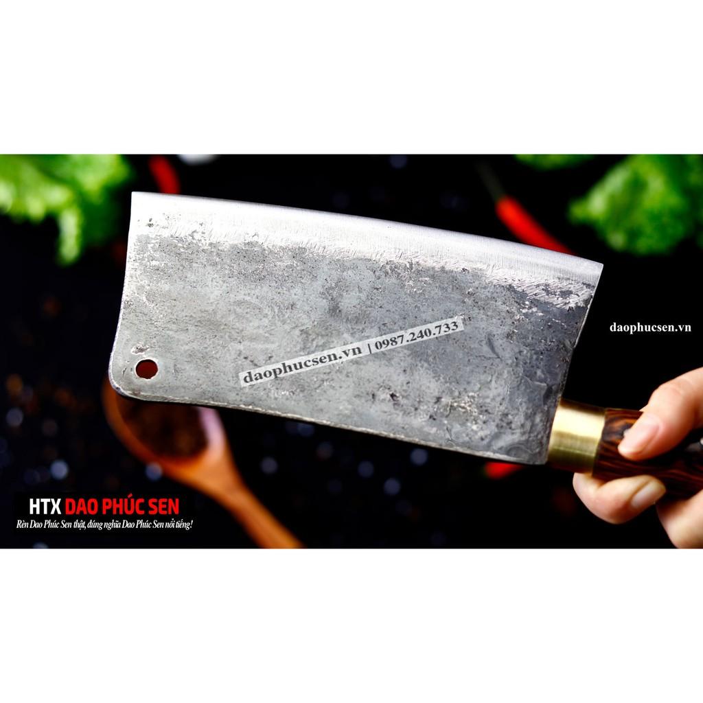 Dao Phúc Sen Chặt Xương Cán Cẩm Khâu Đồng - Kích thước: lưỡi: 24cm, cán: 13cm, rộng: 10cm, dầy: 0,5, trọng lượng: 700g - 900g - Chức năng: sử dụng chuyên chặt xương ống, xưởng