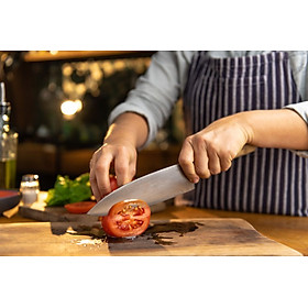 Công dụng: Dùng để phục vụ cho công việc làm bếp, chế biến thức ăn/ thực phẩm trong mọi quán ăn, nhà hàng hay gia đì Dao không gây độc hại cho thực phẩm & thức ăn trong quá trình sơ chế, chế biến