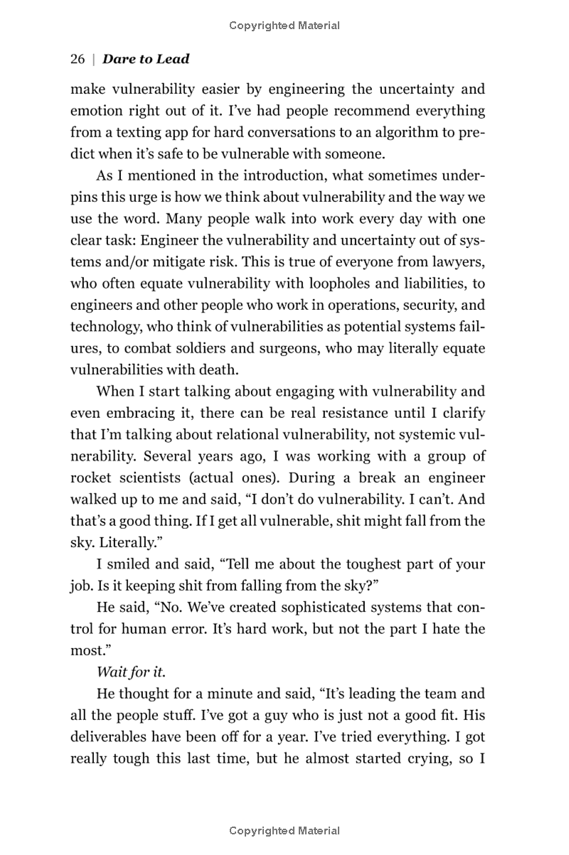 When we dare to lead, we don't pretend to have the right answers; we stay curious and ask the right questions. We don't see power as finite and hoard it; we know that power becomes infinite when we share it and work to align authority and accountability. We don't avoid difficult conversations and situations; we lean into the vulnerability that’s necessary to do good work.
