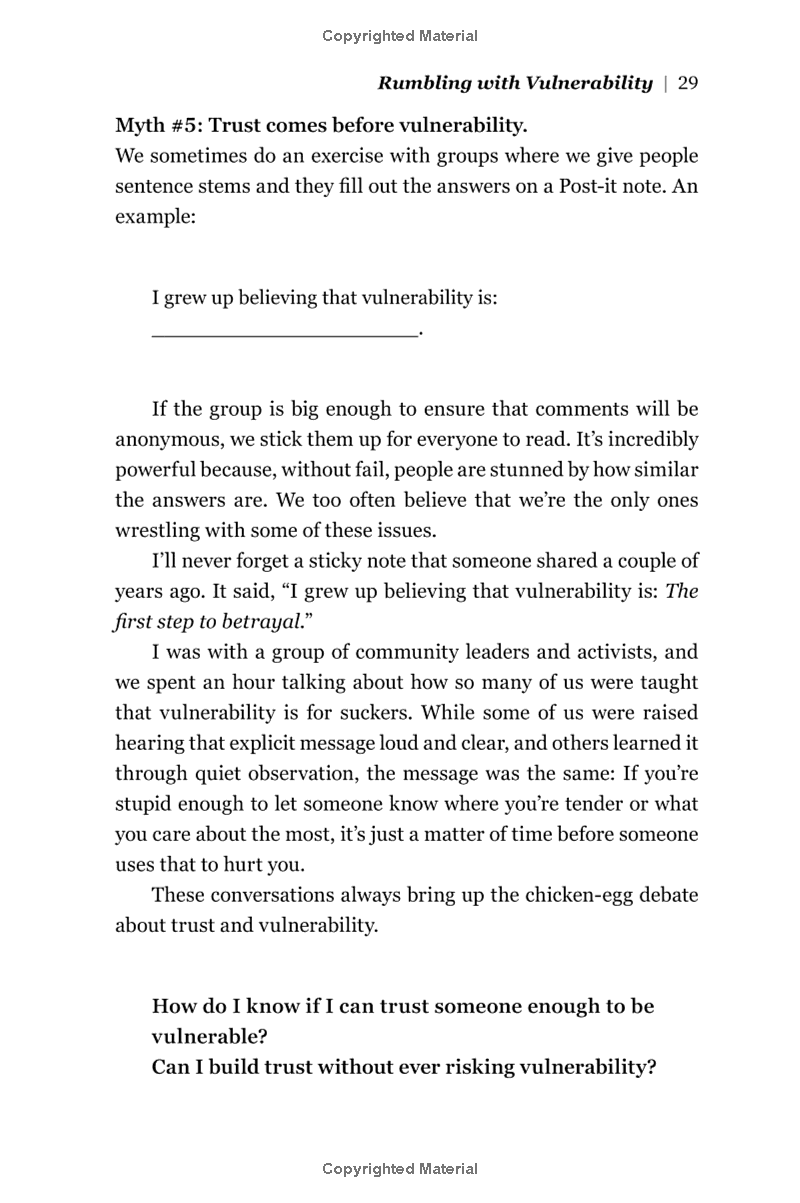 Brené writes, ‘One of the most important findings of my career is that courage can be taught, developed and measured. Courage is a collection of four skill sets supported by twenty-eight behaviours. All it requires is a commitment to doing bold work, having tough conversations and showing up with our whole hearts. Easy? No. Choosing courage over comfort is not easy. Worth it? Always. We want to be brave with our lives and work. It's why we're here.’